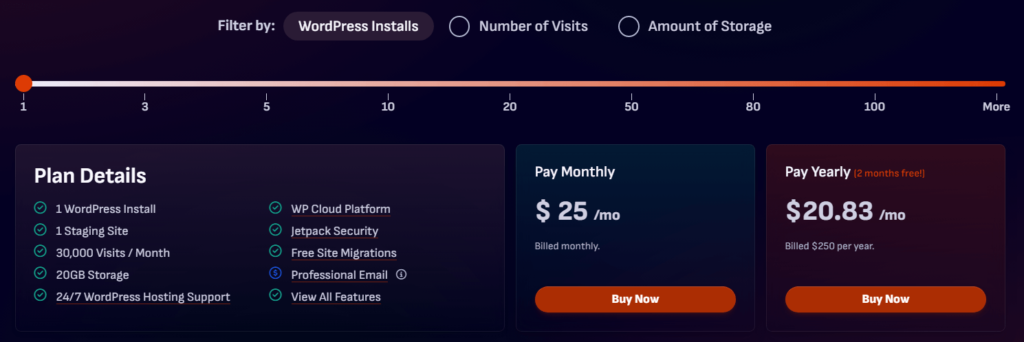 - What you get: automatic updates, daily backups, faster load times, advanced security, and WordPress-expert support.